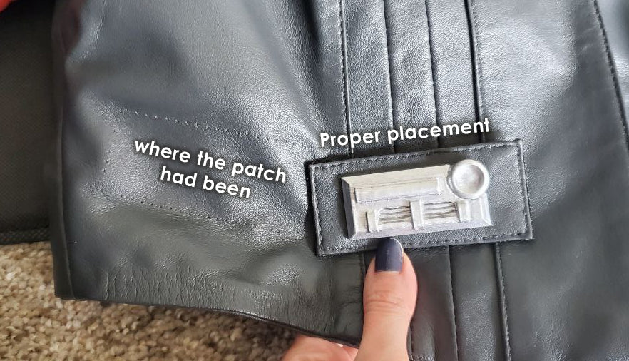 • Leather patch with velcro on right hem torso (position and style as per mock)