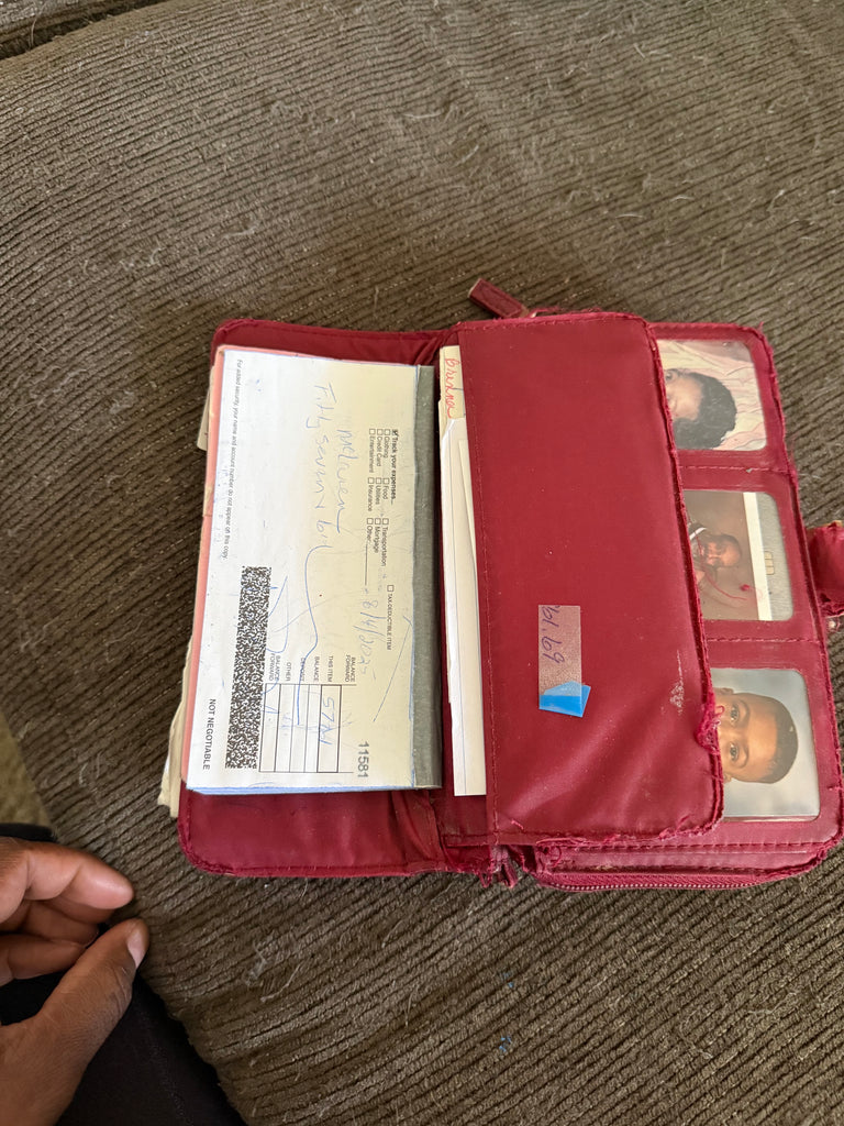 • Dual-section layout: one for cards, photos, and IDs, and the other for a checkbook and additional storage. (as per mock & references)